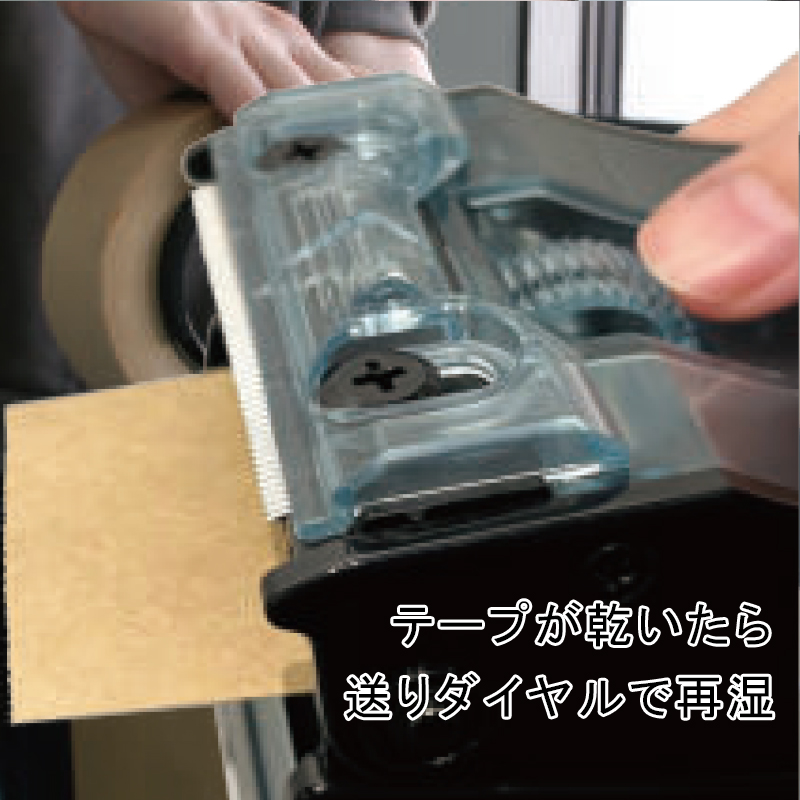 ・テープが乾いたら、送りダイヤルで再湿可能です。